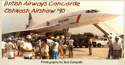 Oshkosh AirVenture 2000 held annually at Whitman Field, Oshkosh, Wisconsin, had scheduled flying demonstrations by the Concorde at this year's show. (2000) Having seen the magnificent jet fly at Oshkosh Airshow '90, I can attest to the fact that that each of the more than 750,000 spectators in attendance will be in disbelief upon learning of "Concorde" crash. Concorde Flight Demonstrations magnify man's amazing skill in building magnificent structural designs. I cannot comprehend the fact that the magnificent jet has crashed with fatal results. |